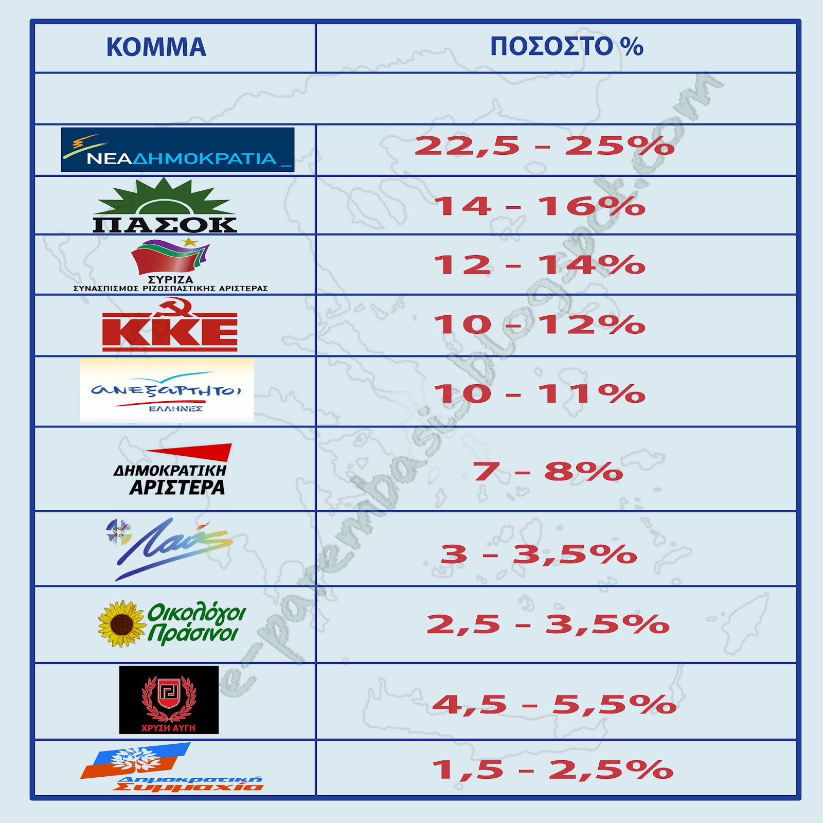 Ο ΛΑΟΣ φαίνεται οριακά μεν αλλά να μπαίνει στη βουλή. Οι Οικολόγοι -Πράσινοι το παλεύουν μέχρι την ύστατη ώρα κι η ΔΗΣΥ της Ντόρας, φαίνεται πως δεν εξασφαλίζει την είσοδό της.